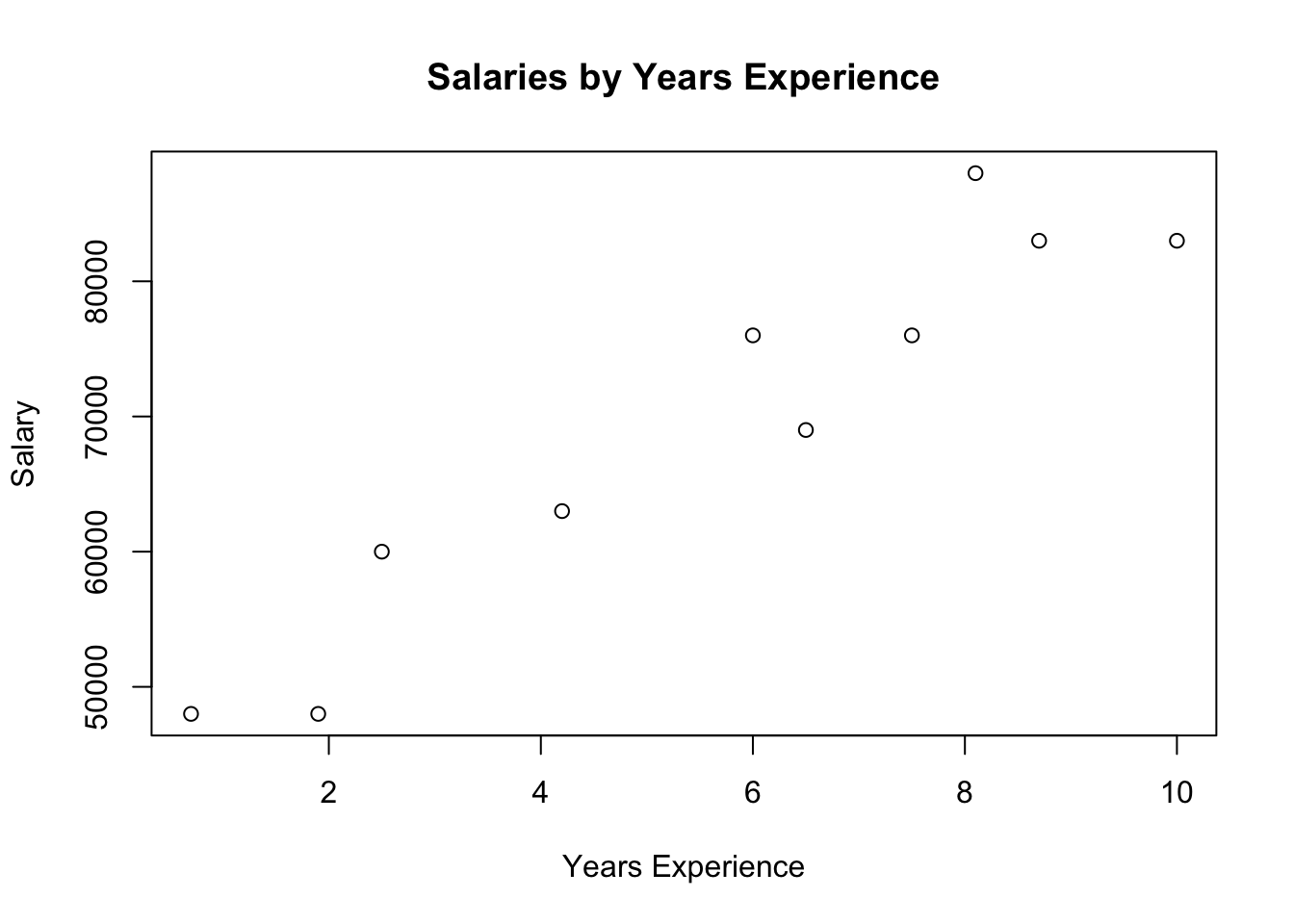 Next we’re given some anonymous data on salaries (in dollars) and tenures (in years).